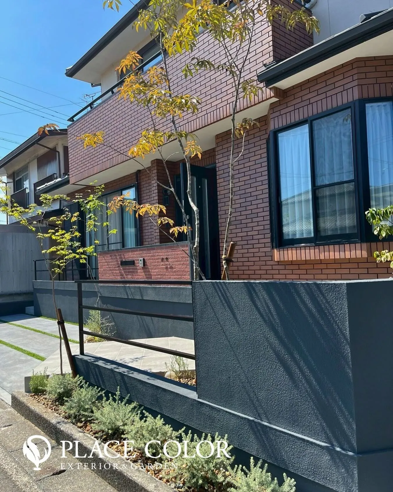 赤レンガ調の外壁に映える、シンプルで洗練された外構リフォーム... 赤レンガ調の外壁に映える、シンプルで洗練された外構リフォーム🧱門袖壁には落ち着いたグレーの塗装仕上げを採用し、黒のスチールフェンスを組み合わせることで、住宅全体の雰囲気を引き締めています。ア…